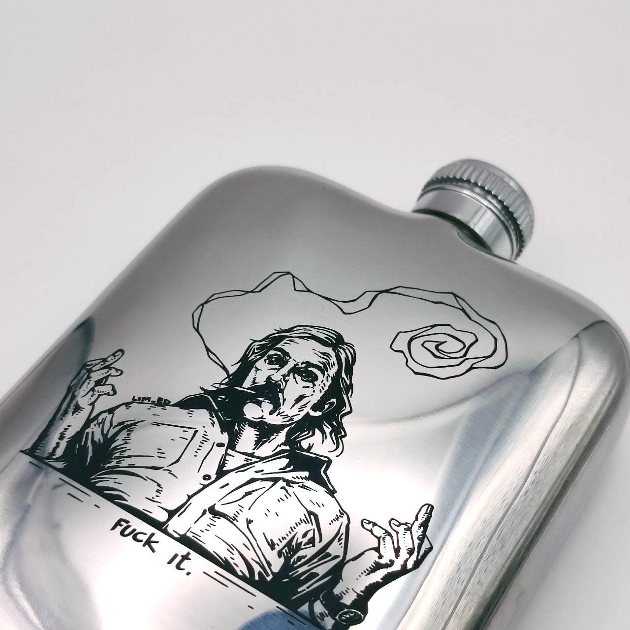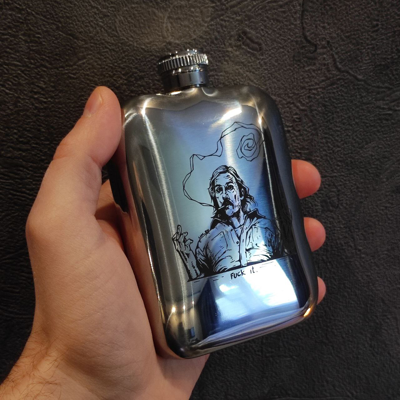 Фляга удобной обтекаемой формы из нержавеющей стали 304, с лазерной гравировкой и чернением! Кайф да и только. Влезает в карман. Маст хэв.
